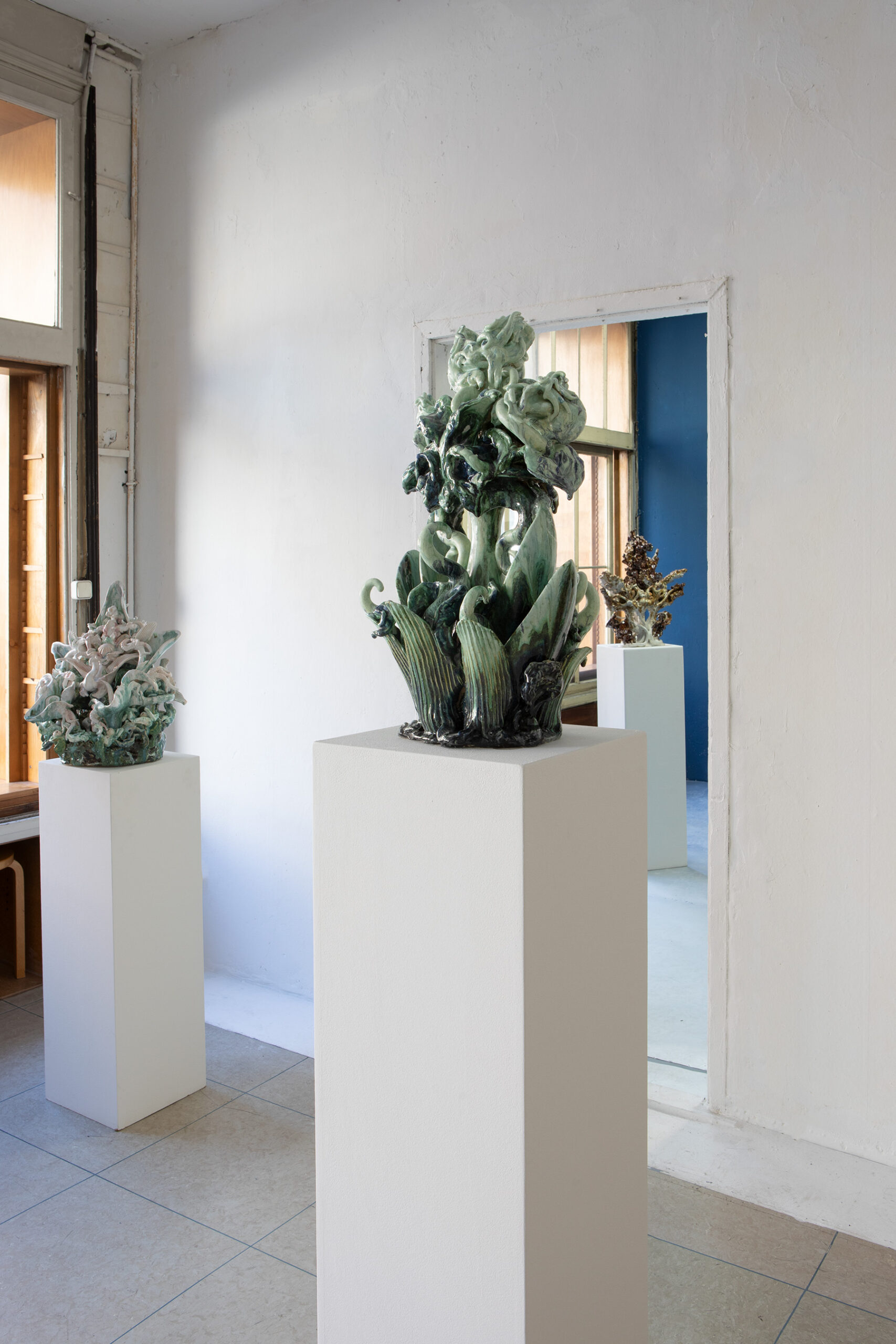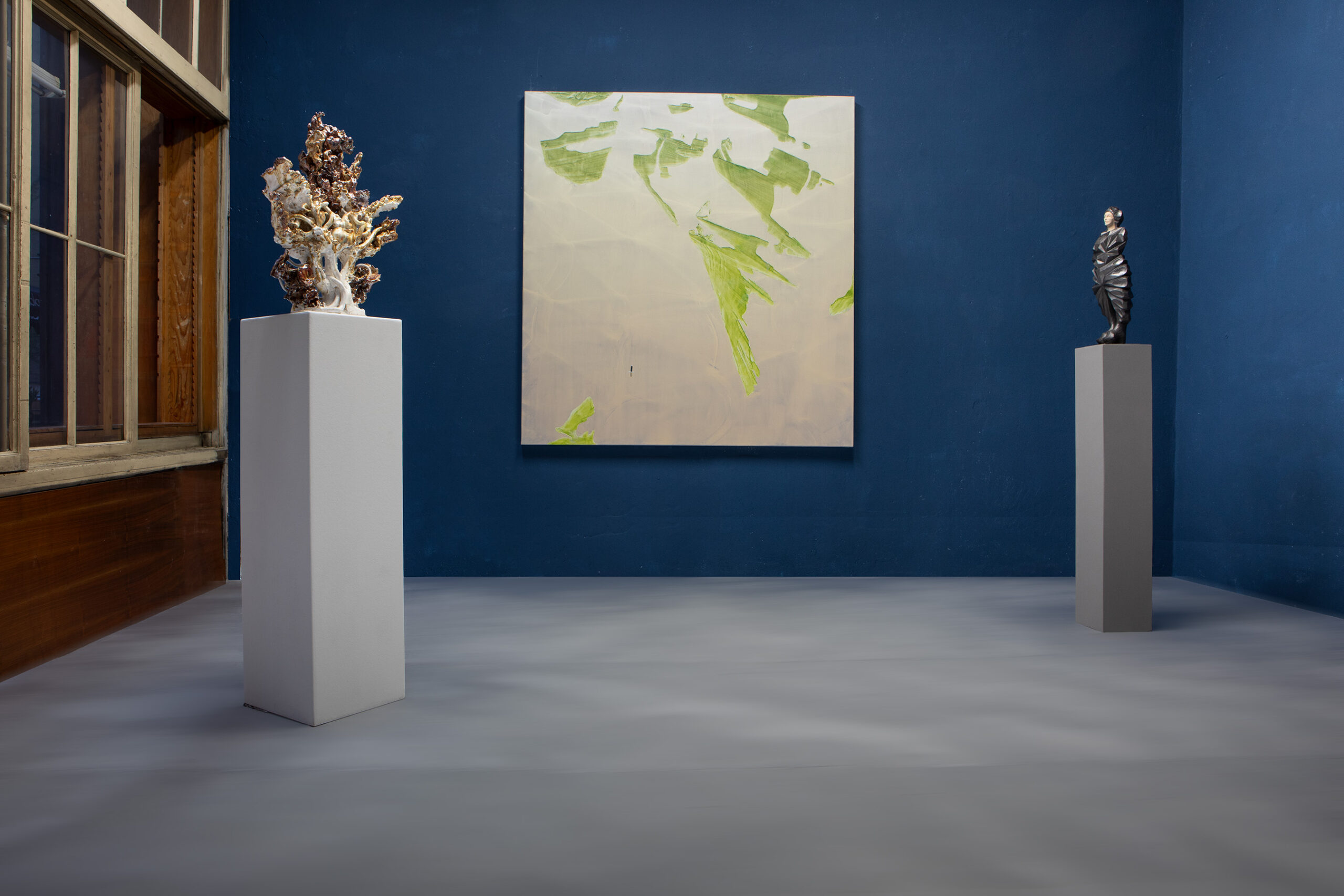 über Morgen 19 März – 9 Mai 2026 Katharina Andress David Borgmann Keiyona Skulptur. Malerei. Ornament. Organisch. Irritierend. Überlebend. Schöpfung aus dem Menschen.
